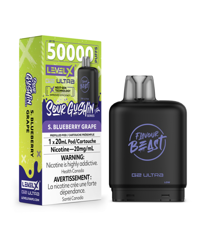 FLAVOUR BEAST LEVEL X G2 ULTRA POD ON GUSHIN S. BLUEBERRY GRAPE