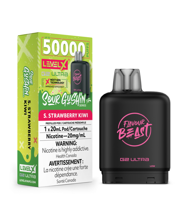 FLAVOUR BEAST LEVEL X G2 ULTRA POD ON GUSHIN S. STRAWBERRY KIWI