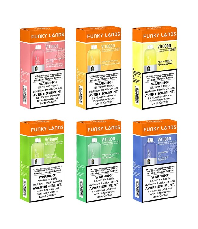 Elevate your vaping experience with the cutting-edge Funky Lands 10000 Disposable Vape. Offering an impressive 10,000 puffs, this device boasts a powerful 600mAh rechargeable battery and quad tech mesh coils, ensuring consistent, full-flavored vapor. With a capacious 21ml e-liquid of 20mg nicotine, satisfaction knows no bounds. No more worries about leaks, thanks to the anti-leak technology, making it effortlessly portable. The integrated display screen not only showcases your battery life but also keeps you updated on e-liquid levels. Sleek, compact, and dependable, the Funky Lands 10000 is designed to meet all your vaping needs.
