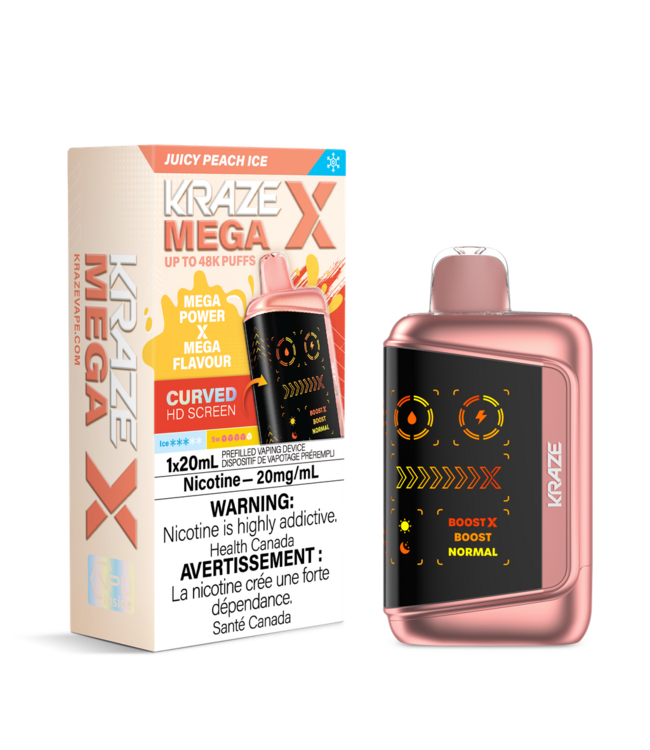 Powered by a VPU-driven dual mesh sub-ohm coil, Juicy Peach Ice produces dense vapour and consistently bold, fruity flavour. Adjustable brightness modes and exclusive Mega X flavours complete a premium vaping experience built to impress.
